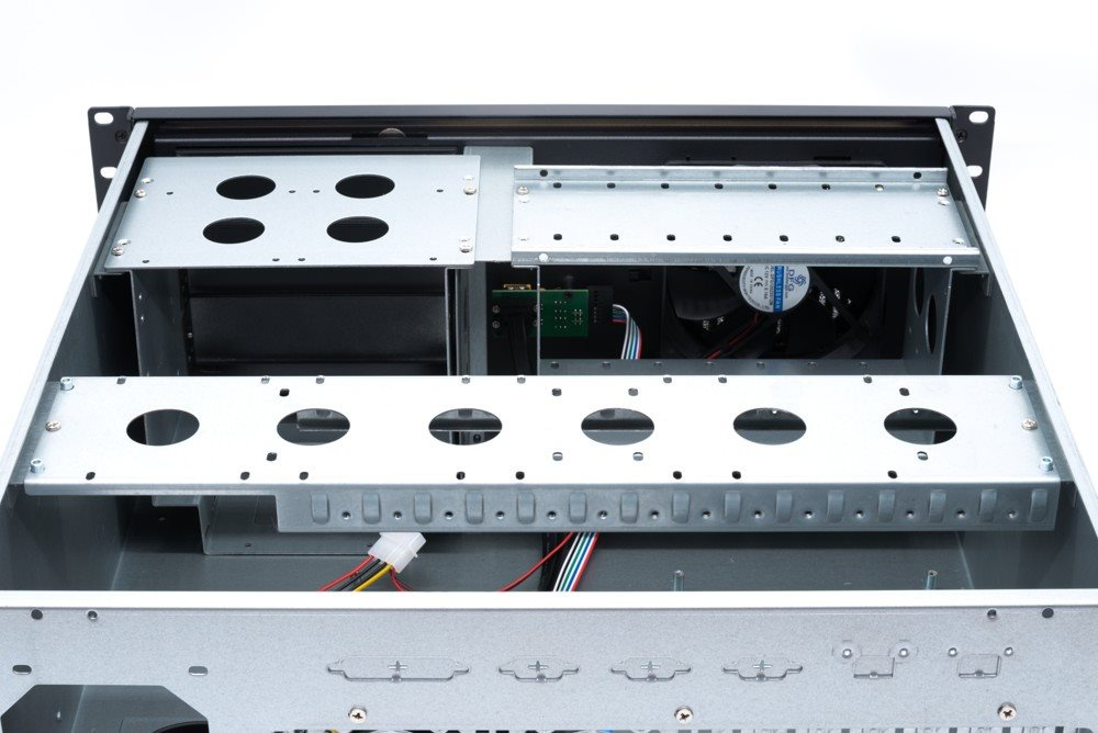 Osazen vyjímatelný prachový filtr a uzamykatelná dvířka. Na bocích skříně pak jsou předpřipraveny otvory se závity pro montáž lineárními kuličkovými výsuvů (ližin) o délce 450 mm (18“) s výsuvem 900 mm. Např. doporučené RL450.18.