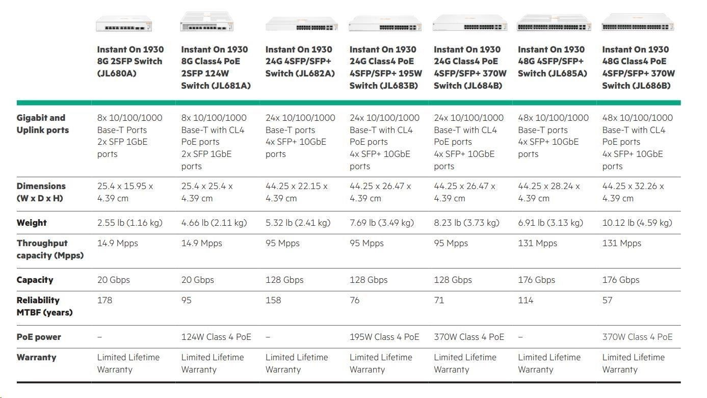 | Aruba Instant On 1930 48G Class4 PoE 4SFP/SFP+ 370W Switch (JL686B) | ||