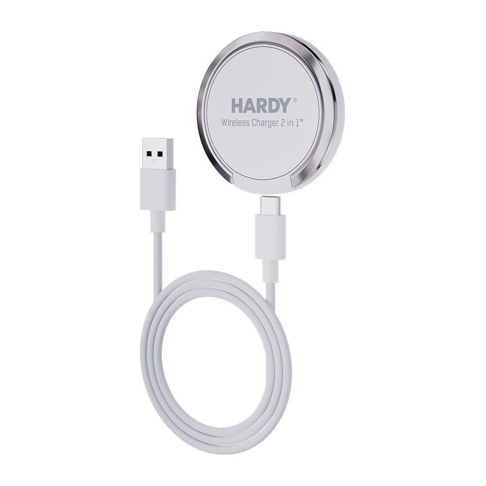 Bezdrátová nabíječka HARDY® 2 v 1™ je bezdrátová nabíječka 2 v 1 určená pro zařízení s technologií MagSafe. Poskytuje pohodlné indukční nabíjení a funguje jako praktická, stabilní kolébka. Jednoduše zatáhněte za vestavěný kroužek a umístěte telefon do polohy, která vám nejvíce vyhovuje. Pro úplné pohodlí je součástí balení USB-C/USB-A kabel o optimální délce 1 m. S bezdrátovou nabíječkou HARDY® Wireless Charger 2 v 1™ využijete potenciál svého smartphonu a budete jej ovládat s nesrovnatelným potěšením.