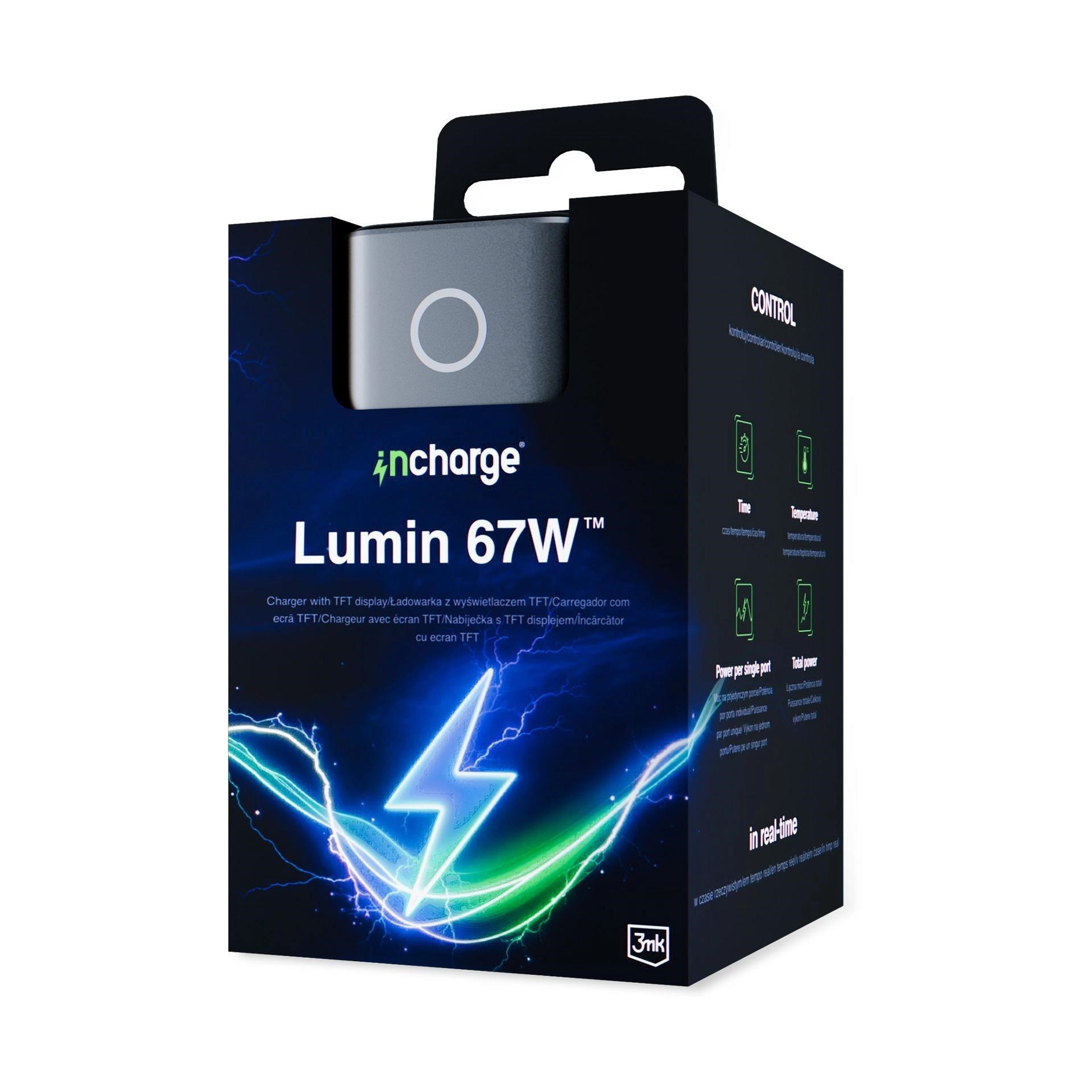3mk napájecí adaptér InCharge Lumin PD 67W QC4+ PPS AFC FCP SCP 1A2C TFT Display Black/Grey