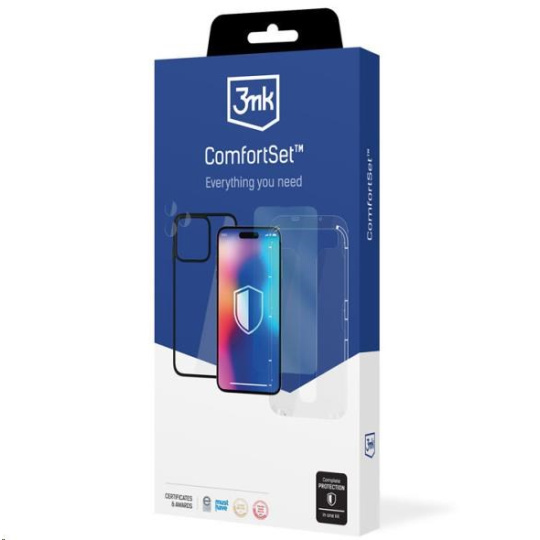 Comfort Set 4in1 je profesionální sada pro samostatné provedení komplexní ochrany chytrého telefonu. Obsahuje vlajkové produkty 3mk Protection: obal Satin Armor Case+, hybridní sklo Resilient Glass na objektiv foťáku Lens Protection, tvrzené sklo na displej telefonu s tvrdostí 9H a jednorázový aplikátor pro instalaci skla. Díky sadě Comfort Set 4in1 ochráníte svůj chytrý telefon, aniž byste museli někam chodit. Navíc se nebudete ani příliš trápit s instalací skla – je to velmi jednoduché a zvládnete to za několik minut!