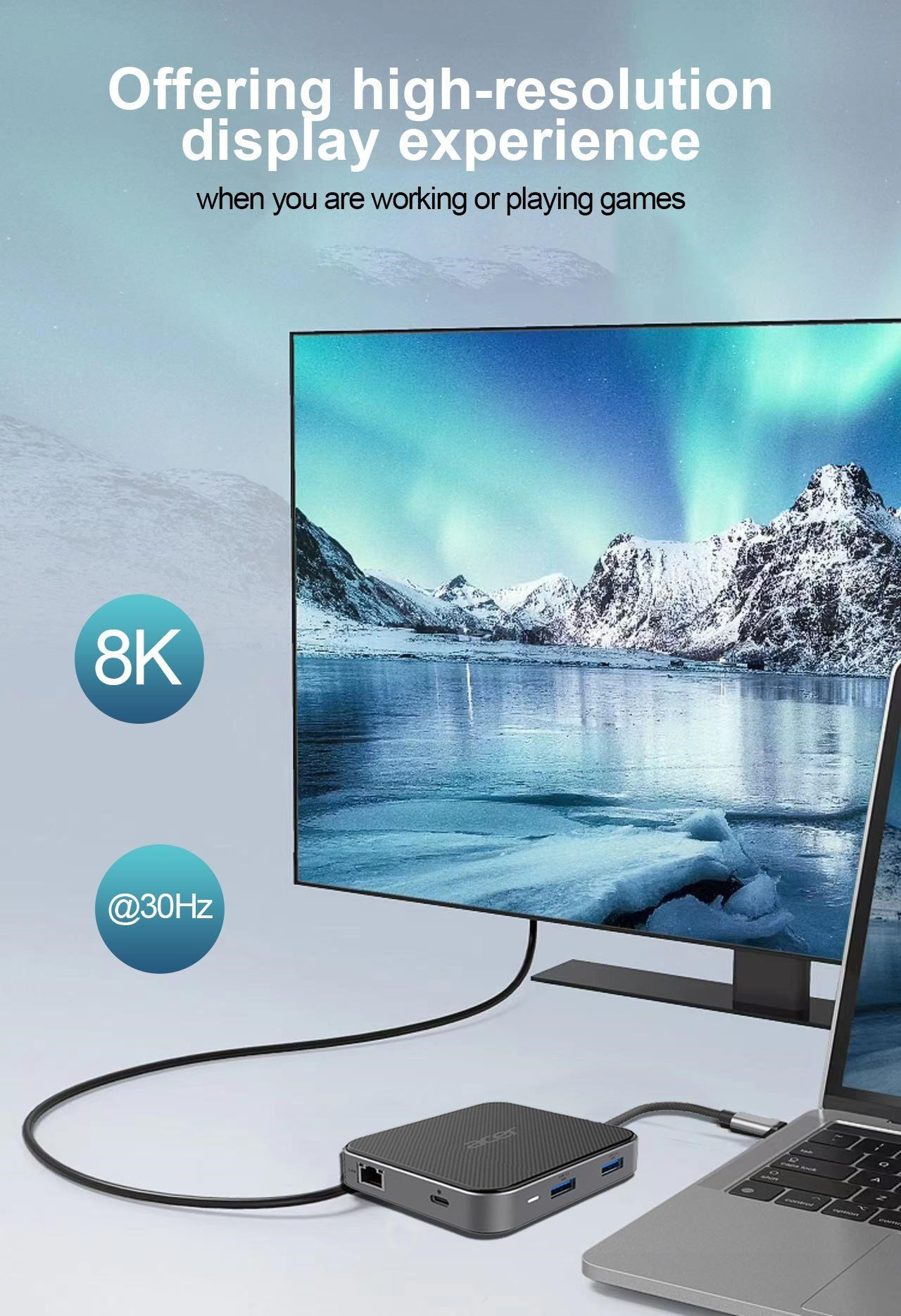 ACER 7in1 USB4 8K Multi Display hub: 1 x HDMI + 1 DP + 2 x USB3.2 + 1 x USB C + 1 x RJ45 + 1 x 3.5mm audio port