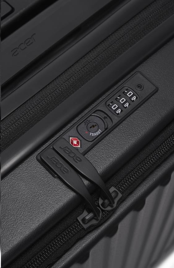 ACER Barcelona luggage 20", černý, pevný cestovní kufr, materiál: 100% recyklovaný PET, TSA kombinační zámek