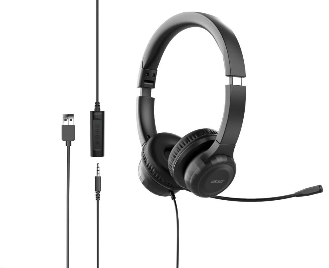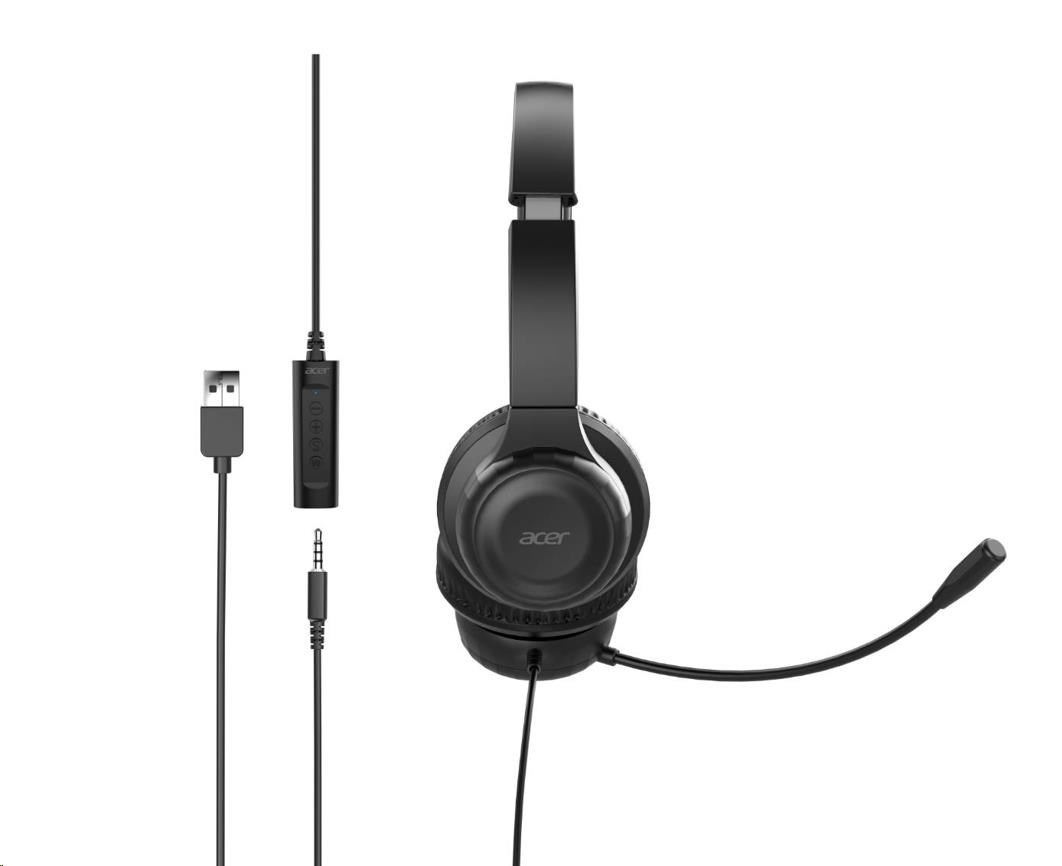 ACER Sluchátka, Office Headset, 3,5 mm Jack / USB s ovládáním na kabelu