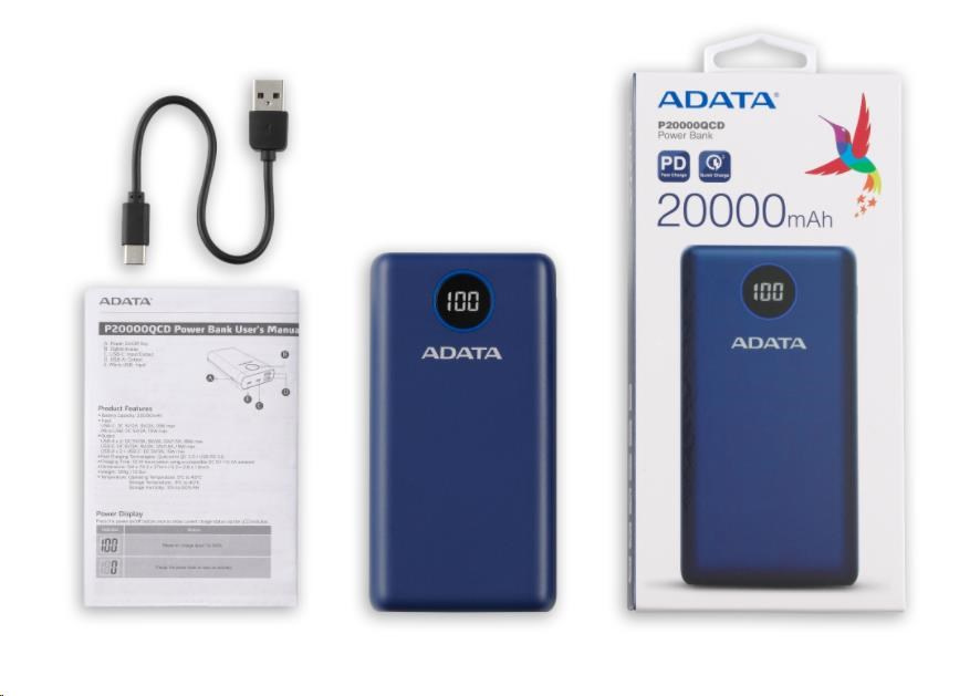 Zkraťte si čekání s powerbankou ADATA P20000QCD! S modelem P20000QCD nabijte svá zařízení coby dup! Tato powerbanka je vybavena velkou baterií 20 000 mAh, má kompaktní formát a podporuje standardy Qualcomm QC 3.0 a USB Power Delivery 3.0.