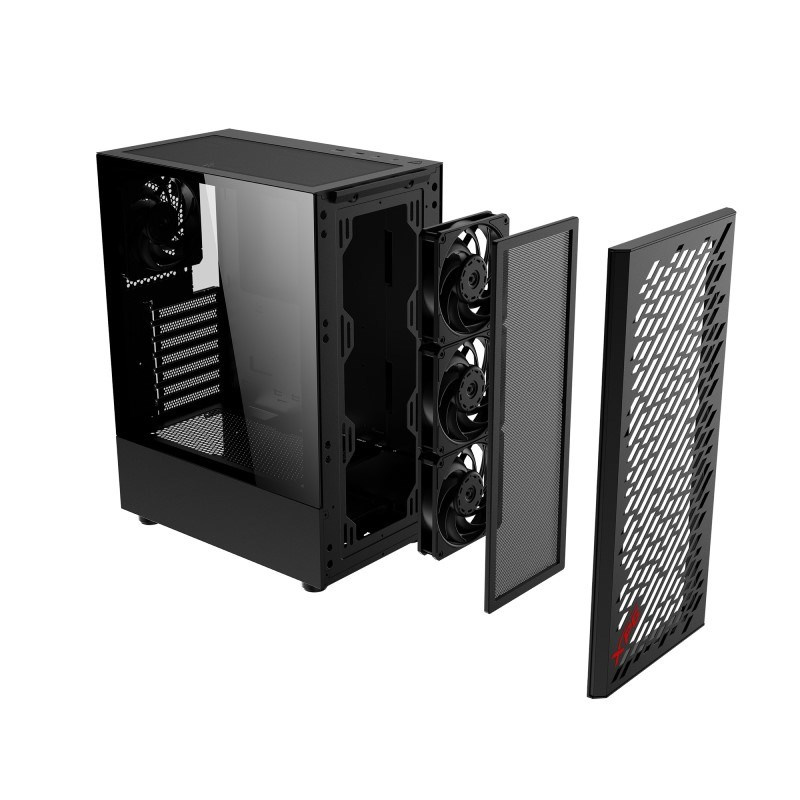 XPG VALOR AIR je kompaktní ATX mid-tower šasi s designem předního panelu Streamline-Carving. Magnetický přední panel a filtr jsou odnímatelné, vhodné pro rychlé čištění. Boční panel z 3mm tvrzeného skla slouží jako způsob, jak si užít pohled přes tvrzené sklo.
