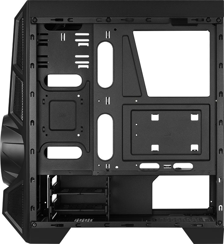 Skříň formátu Middle Tower se stylovým designem a RGB LED na předním panelu. 14 režimů osvětlení: 7 RGB a 7 statických barevných režimů. LED přepínač umožňuje nastavit světelné efekty tak, aby vyhovovaly vašemu stylu a náladě.