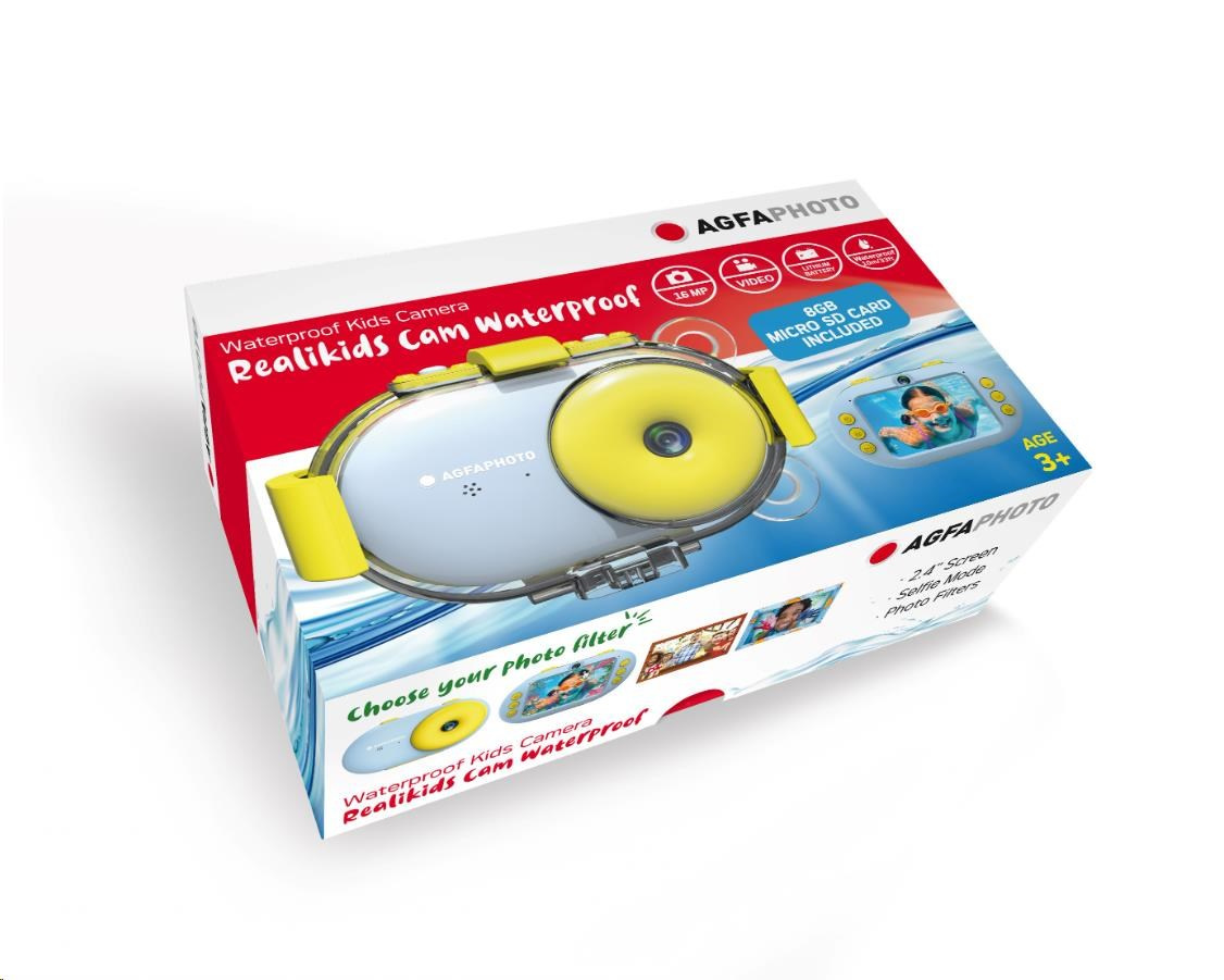 Díky pouzdru, které je vodotěsné do 10 metrů, může Realikids Cam Waterproof doprovázet vaše děti na všech jejich suchozemských i podmořských dobrodružstvích. Je vybaven 2,4" LCD obrazovkou pro úspěšné zarámování fotografií/videí a jejich pohodlné prohlížení po pořízení. S 8GB micro SD kartou a lithiovou baterií (součástí balení) je tato kamera připravena k použití. Jeho robustní a ergonomický design zaručuje snadné použití pro malé ruce a potěší každého malého fotografa.