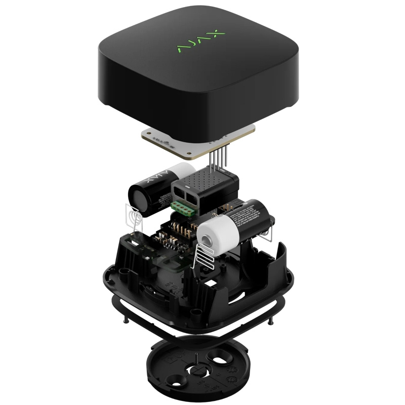 | Citlivý prvek | Digitální senzor oxidu uhličitého (hodnoty zobrazované v aplikacích Ajax jsou aktualizovány v závislosti na intervalu dotazování Hub – detektor, nejméně však 1x za minutu) |