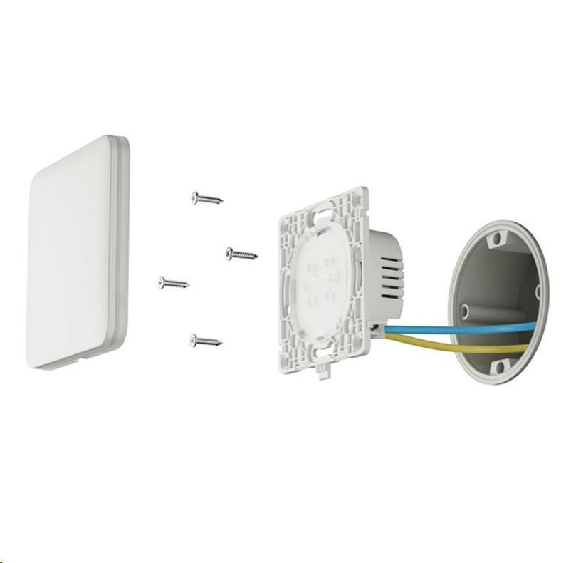 Kombinovaný vypínač se skládá ze 2, 3, 4 nebo 5 relé, dotykových tlačítek a rámečku s odpovídajícím počtem otvorů. Místo vypínače lze použít i inteligentní zásuvku Ajax