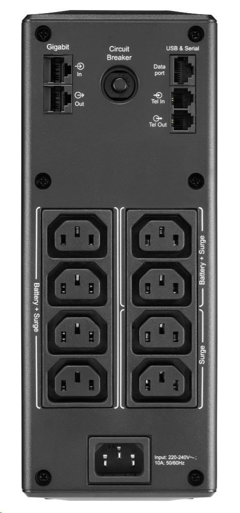 Počet výstupních zásuvek:8; Použití:Desktop; Provedení:Tower; Zdánlivý výkon VA:1600; Topologie:Line-Interactive; Fáze (Vstup/Výstup):1:1; Komunikace:USB; Typ výstupu:IEC 13; Ochrana telefonní sítě; Ochrana datové sítě.... více