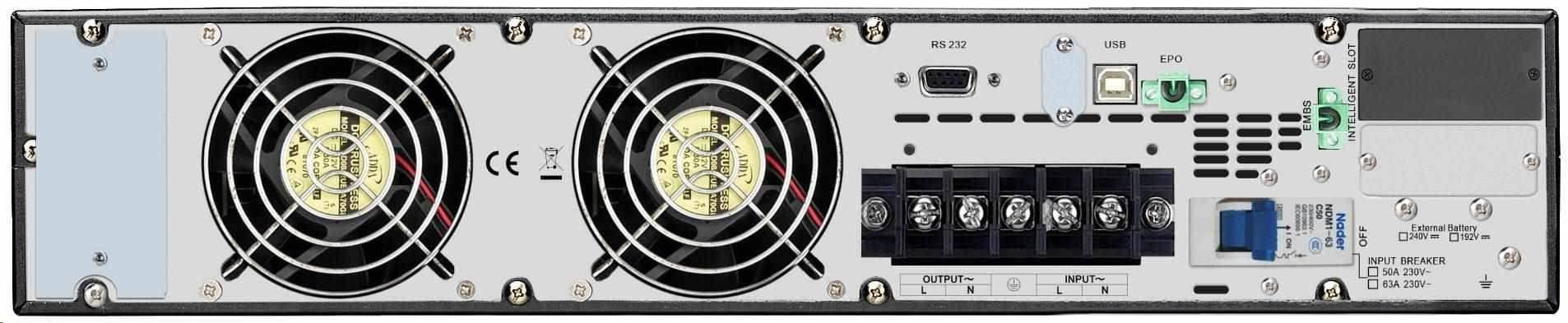 Použití:Průmyslové; Provedení:Rackmount; Zdánlivý výkon VA:10000; Výška v Racku:5U; Topologie:On-Line; Fáze (Vstup/Výstup):1:1; Komunikace:USB, RS232; Možnosti:Volitelně Management karta, Prodloužení záložního času, EPO konektor; Typ výstupu:Svorkovnice.... více