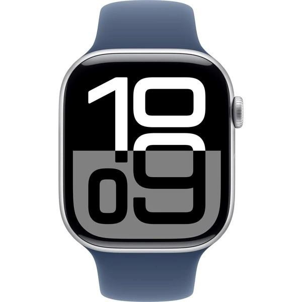 Apple Watch Series 10 GPS + Cellular 46mm Silver Aluminium Case with Denim Sport Band - S/M