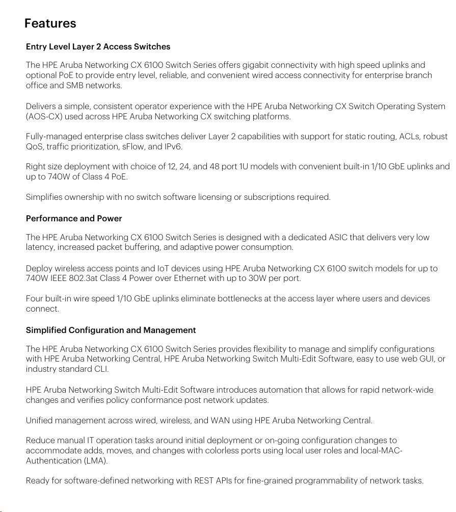 Aruba 6100 12G Class4 PoE 2G/2SFP+ 139W Switch JL679A RENEW.
