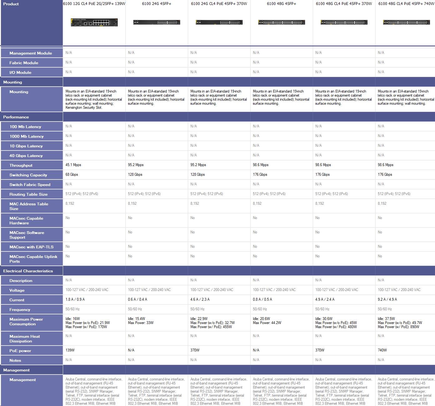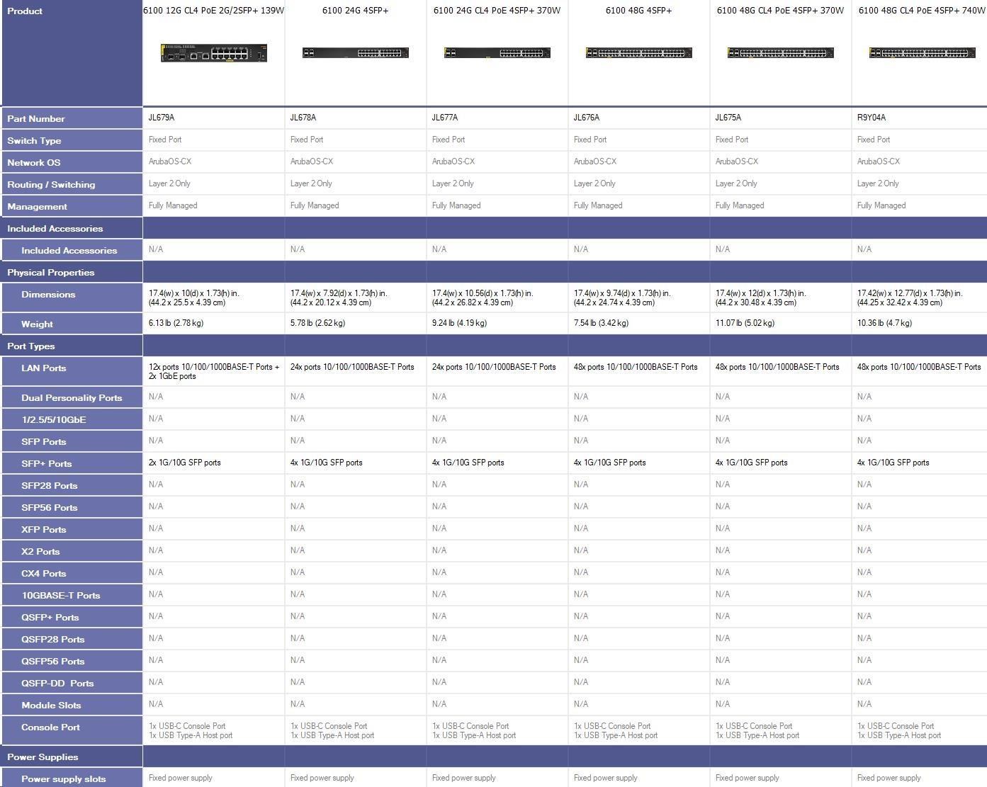 | Aruba 6100 48G Class4 PoE 4SFP+ 370W Switch (JL675A)) | |
