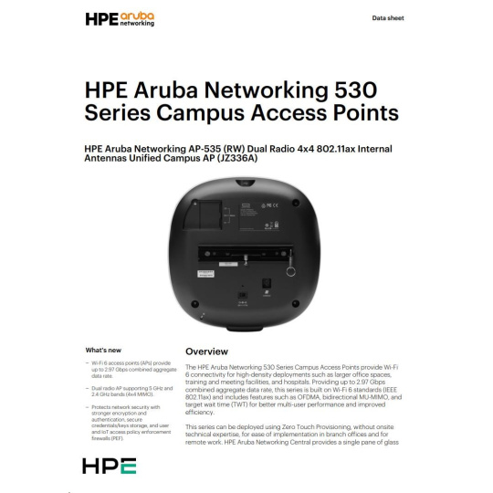 | Aruba Secure Infrastructure The Aruba 530 Series includes components of Aruba's 360 Secure Fabric to help protect user authentication and wireless traffic. Select capabilities include: |