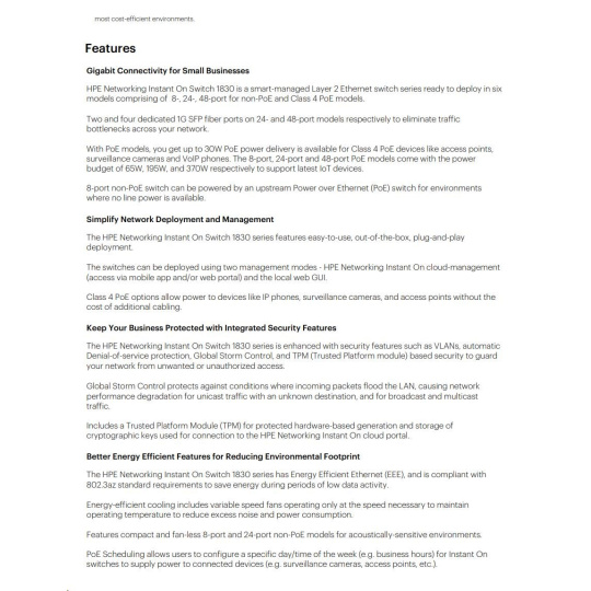 Aruba Instant On 1830 48G 24p Class4 PoE 4SFP 370W Switch