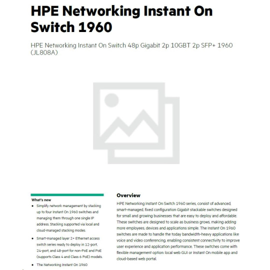 HPE Networking Instant On Switch 48p Gigabit 2p 10GBT 2p SFP+ 1960 (JL808A).