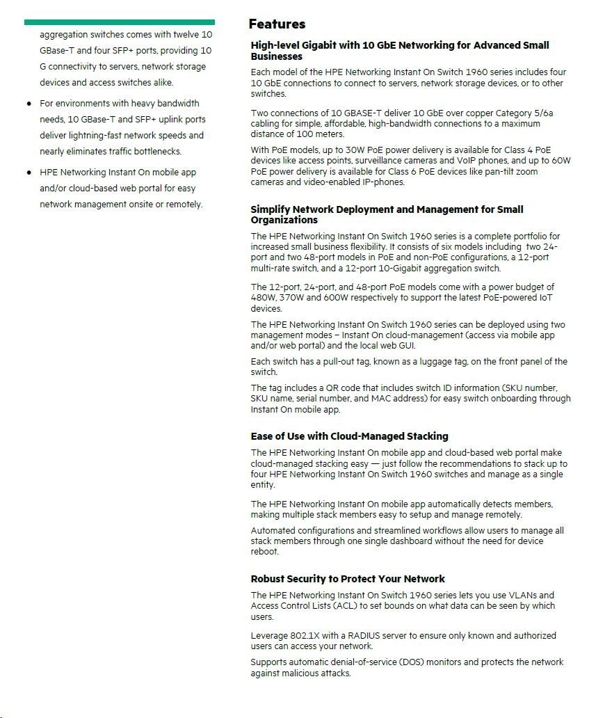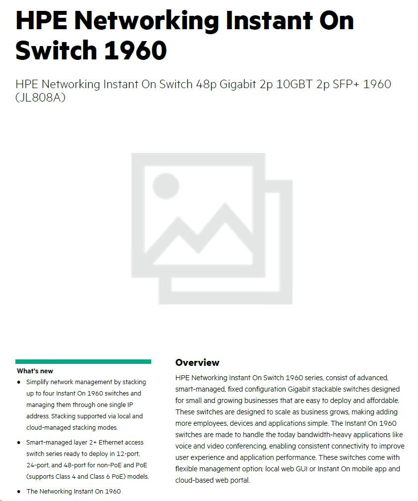 HPE Networking Instant On Switch 48p Gigabit 2p 10GBT 2p SFP+ 1960 (JL808A).