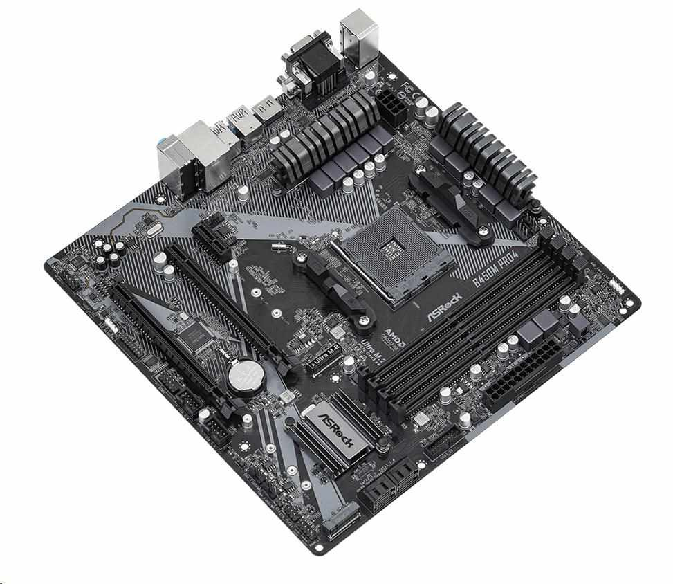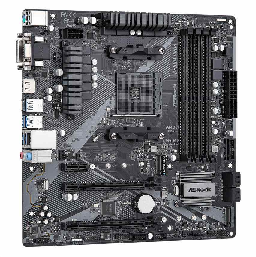 ASRock MB Sc AM4 B450M PRO4 R2.0, AMD B450, 4xDDR4, 1xHDMI, 1xDVI, 1xVGA, mATX