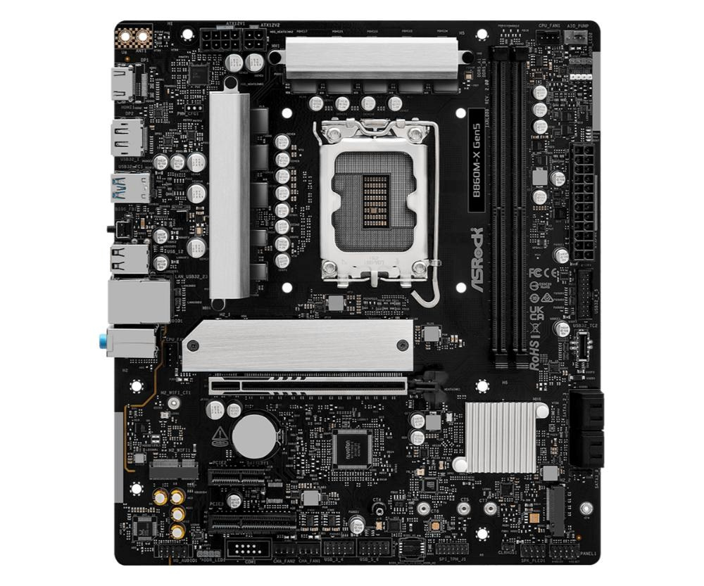 Formát základní desky:micro ATX; Chipset:Intel B860; Socket (patice):Socket 1851; Pro procesory:Intel; Technologie paměti RAM:DDR5; Počet paměťových slotů:2; M.2 slot:2; SATA 3:4; Podpora RAID:0, 1, 5, 10; PCI Express x16:1; PCI Express x8:0; PCI Express x1:1; PCI:0; LAN:2.5Gbit/s; Bezdrátové připojení:bez; DisplayPort:1; HDMI:1; VGA:0; DVI:0.... více