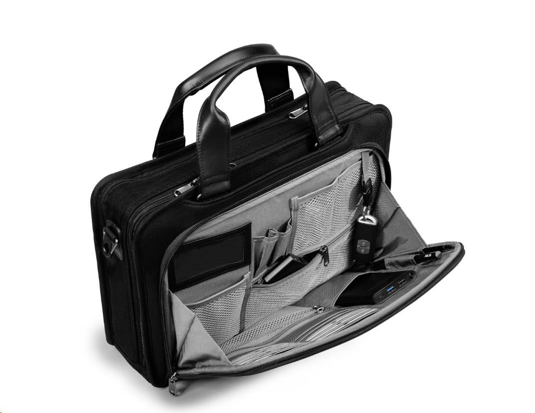 ASUS Vantage Briefcase byl navržený pro práci i volný čas. Je vhodný pro přenos a uložení 15.6 palcového notebooku s příhrádkou pro 11palcový tablet. Propracovaný systém uložení zahrnuje řadu vnějších kapes vhodných k uložení osobních věcí. Přední kapsa je ideální pro až 6palcový telefon a úschovu dokladů.