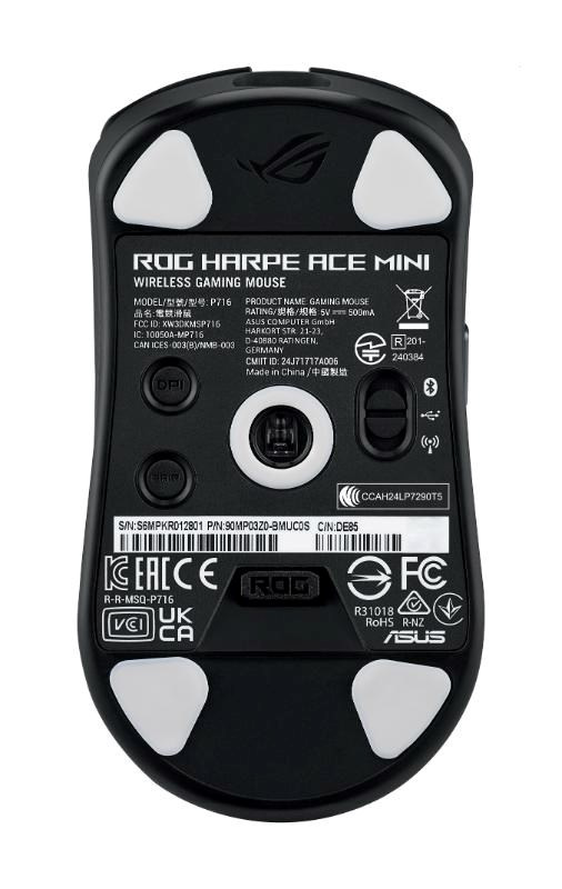 ROG Harpe Ace Mini je ultralehká 49gramová polosymetrická herní myš s tvarem schváleným profesionálními hráči FPS. ROG Harpe Ace Mini je vybaven optickým senzorem ROG AimPoint Pro s rozlišením 42 000 dpi a optickými mikropřepínači ROG a zobrazuje špičkový bezdrátový výkon s bezdrátovou technologií SpeedNova a podporuje až 8 000 Hz bezdrátovou rychlost dotazování (kompatibilní s ROG Polling Rate Booster).