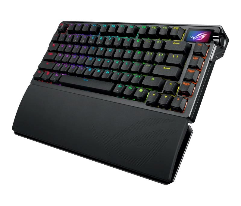 ROG Azoth Extreme je přizpůsobitelná 75% herní klávesnice s prémiovým šasi z hliníkové slitiny a kovovým rámem. Vyznačuje se rychlostí hlášení 8000 Hz s ROG Polling Rate Booster a více než 1600 hodin výdrže baterie v bezdrátovém režimu ROG SpeedNova 2,4 GHz. Vylepšený OLED dotykový displej a třícestný knoflík umožňují monitorování systému a rychlé nastavení. Polohovací deska z uhlíkových vláken zajišťuje ostrý zvuk při psaní, zatímco tři tlumicí vrstvy absorbují vibrace. Nastavitelný držák těsnění s pádlovým spínačem nabízí dvě možnosti psaní.