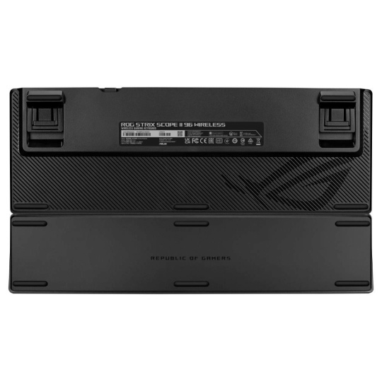 Herní klávesnice ROG Strix Scope II X s mechanickými spínači ROG NX V2 s možností výměny za provozu, pěnovým tlumením zvuku, zdvojenými klávesami PBT nebo ABS s UV povlakem, streamovacími klávesami, multifunkčními ovládacími prvky, třemi úhly sklonu a opěrkou zápěstí.