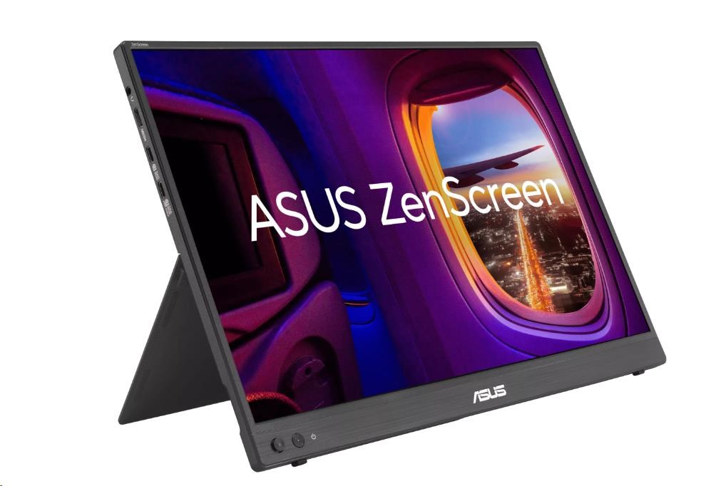 ASUS ZenScreen MB16FC je 16palcový přenosný IPS monitor s rozlišením WUXGA (1920 x 1200). Tento displej s poměrem stran 16:10 nabízí větší zobrazovací plochu, což z něj činí ideální druhý monitor pro rozšíření pracovní plochy pro hybridní pracovníky. Díky funkci automatického otočení lze ZenScreen flexibilně používat v horizontální i vertikální orientaci. Díky funkci průchodu napájení a portům USB-C můžete navíc využívat obousměrné napájení, které nabízí flexibilitu na cestách.