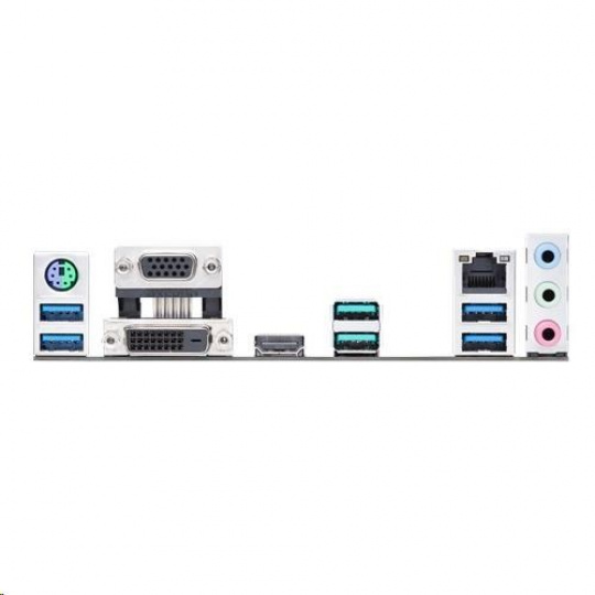 | Back I/O Ports | 1 x PS/2 keyboard/mouse combo port(s) 1 x DVI-D 1 x D-Sub 1 x HDMI 1 x LAN (RJ45) port(s) 2 x USB 3.2 Gen 2 (teal blue) (2 x Type-A) 4 x USB 3.2 Gen 1 (blue) Type-A 3 x Audio jack(s) |