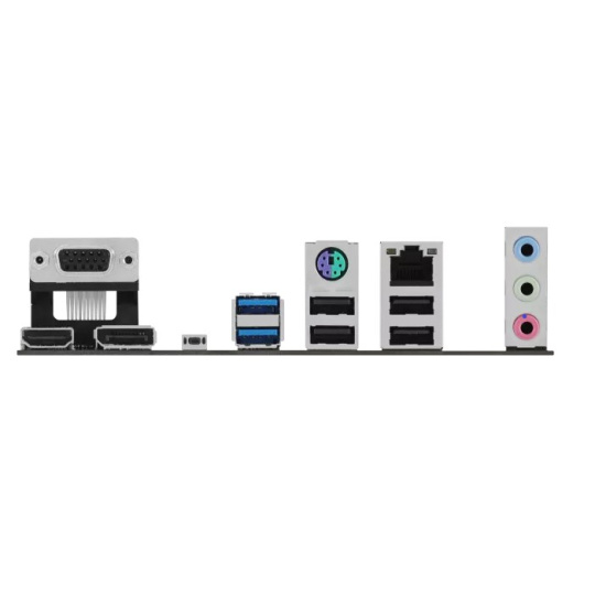 2 x USB 3.2 Gen 1 (5G) ports (2 x Type-A) 4 x USB 2.0 ports (4 x Type-A) 1 x DisplayPort 1 x VGA port 1 x HDMI™ port 1 x Realtek 1Gb Ethernet port 3 x Audio jacks 1 x BIOS FlashBack™ button 1 x PS/2 Keyboard/Mouse combo port