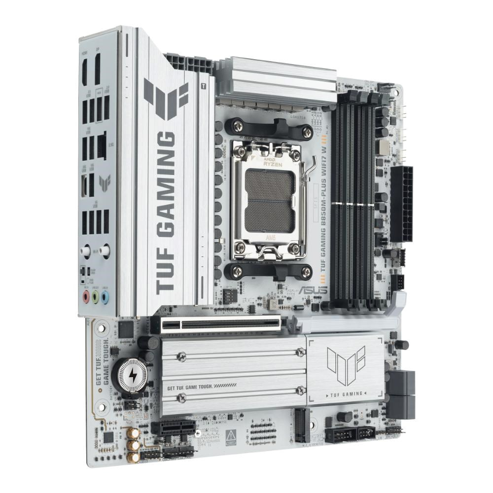 ASUS TUF GAMING B850M-PLUS WIFI7 W takes all the essential elements of the latest AMD Ryzen™ processors and combines them with game-ready features and proven durability. Engineered with military-grade components, an upgraded power solution and a comprehensive cooling system, this motherboard goes beyond expectations with rock-solid and stable performance for marathon gaming. TUF GAMING motherboards also undergo rigorous endurance testing to ensure that they can handle conditions where others may fail. This platform delivers the power and connectivity that advanced AI PC applications demand.