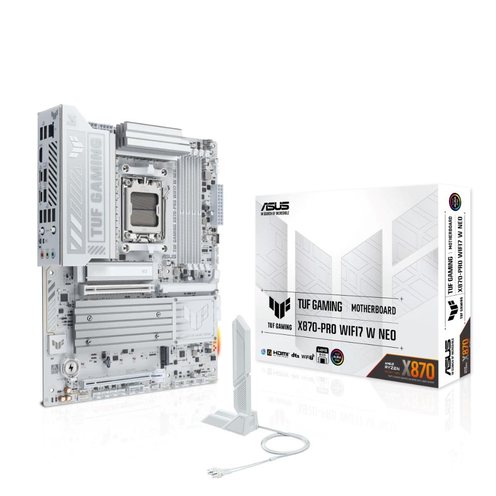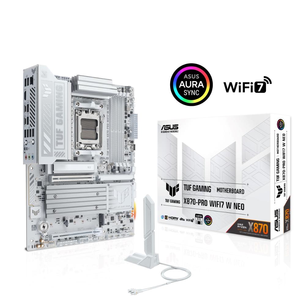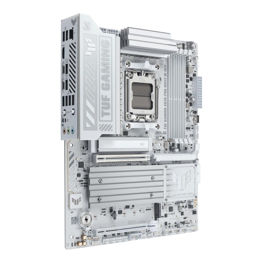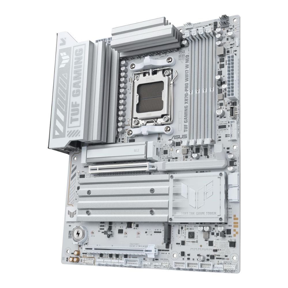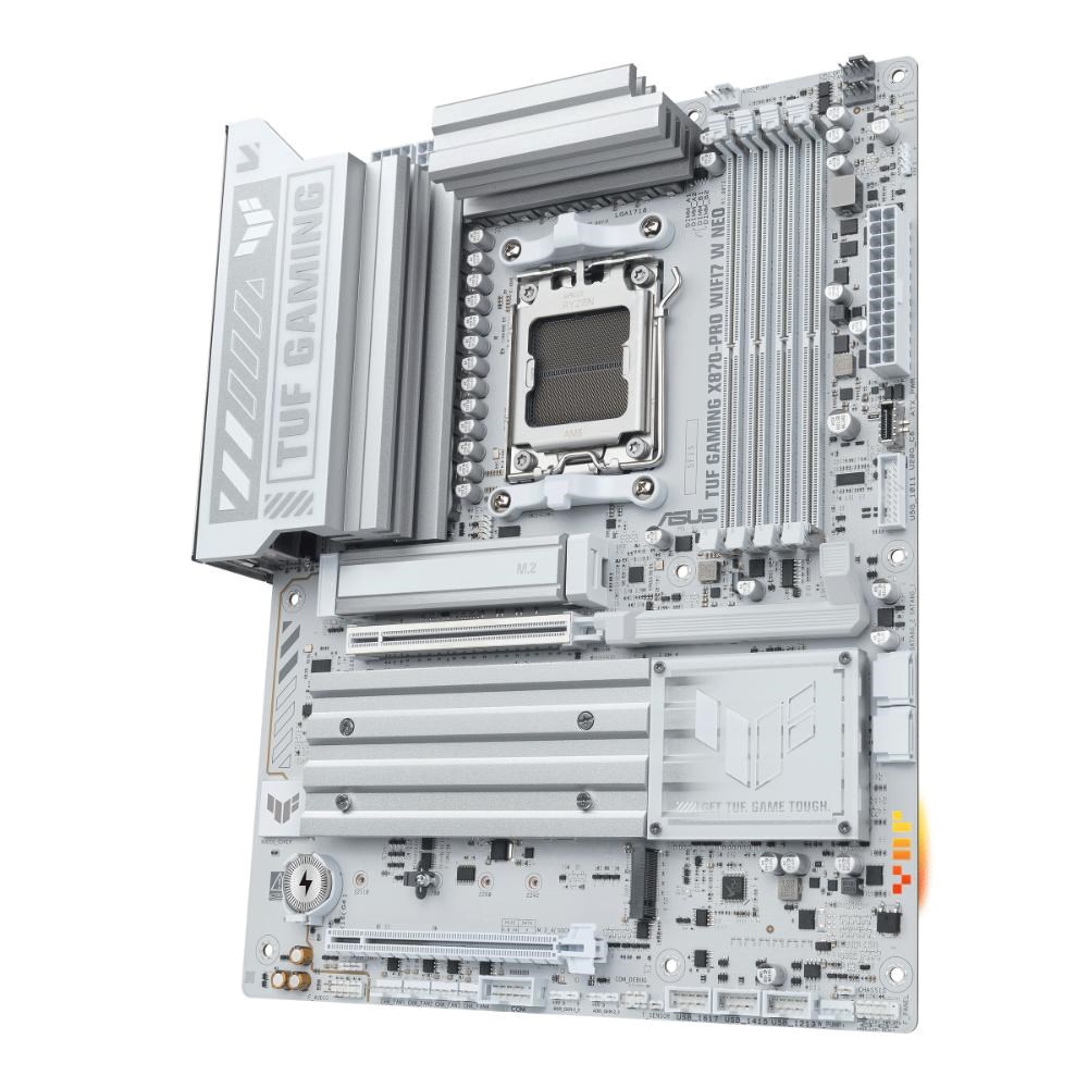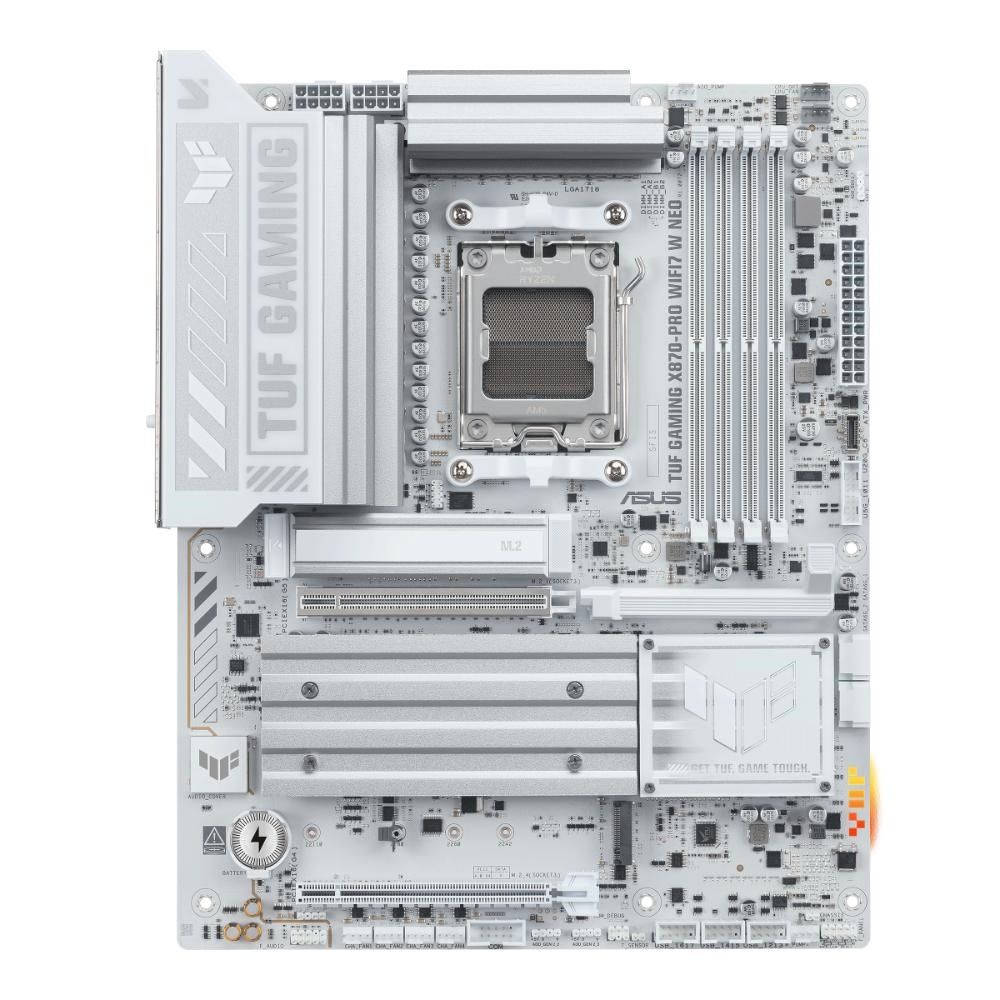 ASUS TUF GAMING X870-PRO WIFI7 W NEO takes all the essential elements of the latest AMD Ryzen™ processors and combines them with game-ready features and proven durability. Engineered with an upgraded power solution and a comprehensive cooling system, this motherboard goes beyond expectations with rock-solid and stable performance for marathon gaming. TUF GAMING motherboards also undergo rigorous endurance testing to ensure that they can handle conditions where others may fail. This platform delivers the power and connectivity that advanced AI PC applications demand.