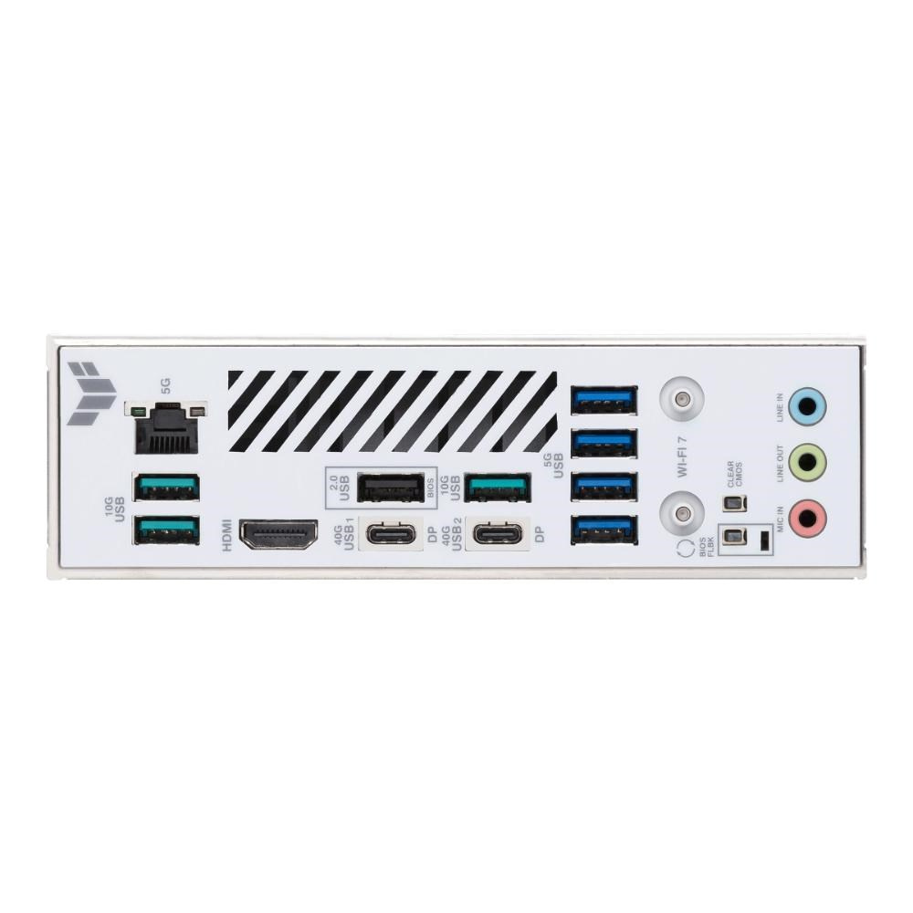 USB4®, USB 10Gbps, USB 5Gbps, USB 2.0, HDMI™, Wi-Fi module, Ethernet, Audio jacks, BIOS FlashBack™, Clear CMOS
