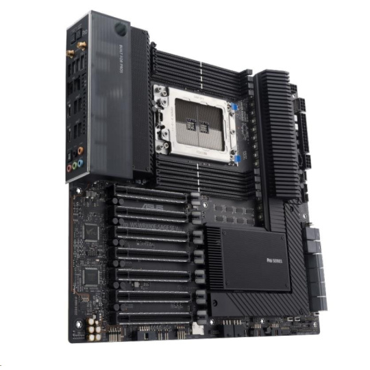 AMD WRX80 Ryzen™ Threadripper™ PRO extended-ATX workstation motherboard with Intel dual 10 G LAN, USB 3.2 Gen 2x2 Type-C port, 7 x PCIe 4.0 x16 slots, 3 x M.2 PCIe 4.0, ASMB9-iKVM, 2 x U.2 and 16 power stages