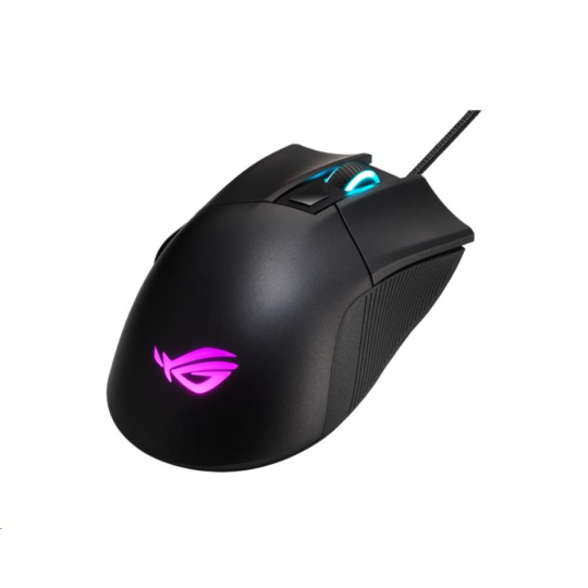 • Classic ROG Gladius ergonomics, with discrete left and right buttons, lightweight design and durable non-slip side grips etched with the iconic ROG totem