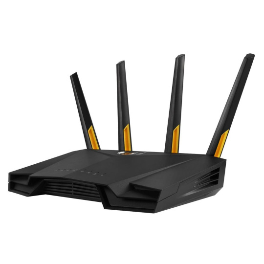 TUF Gaming AX3000 V2 Dual Band WiFi 6 Gaming Router with Mobile Game Mode, 3 steps port forwarding, 2.5Gbps port, AiMesh for mesh WiFi, AiProtection Pro network security Ultrafast WiFi 6 - Enjoy speeds up to 3000 Mbps and 4X network efficiency with OFDMA and 160 MHz channels. True Multi-Gigabit wired speeds - Aggregated 2 Gigabit LAN connections, wired 2.5Gbps port and WiFi 6. Easy Port Forwarding in 3 Steps - Open NAT makes port forwarding simple, eliminating frustrating and complicated manual configuration. ASUS AiMesh Support – Create a flexible, seamless whole-home mesh network with AiMesh-compatible routers. Tested Durability and Stable Operation - TUF Gaming AX3000 V2 is built to be durable and undergoes verified testing to ensure reliable, stable operation. 802.11a : up to 54 Mbps 802.11b : up to 11 Mbps 802.11g : up to 54 Mbps WiFi 5 (802.11ac) (1024QAM) : up to 867 Mbps WiFi 6 (802.11ax) (2.4GHz) : up to 574 Mbps WiFi 6 (802.11ax) (5GHz) : up to 2402 Mbps 2.4GHz 2x2 5GHz 2x2 RJ45 for 2.5 Gigabits BaseT for WAN x 1, RJ45 for Gigabits BaseT for LAN x 4, USB 3.2 Gen 1 x 1,.