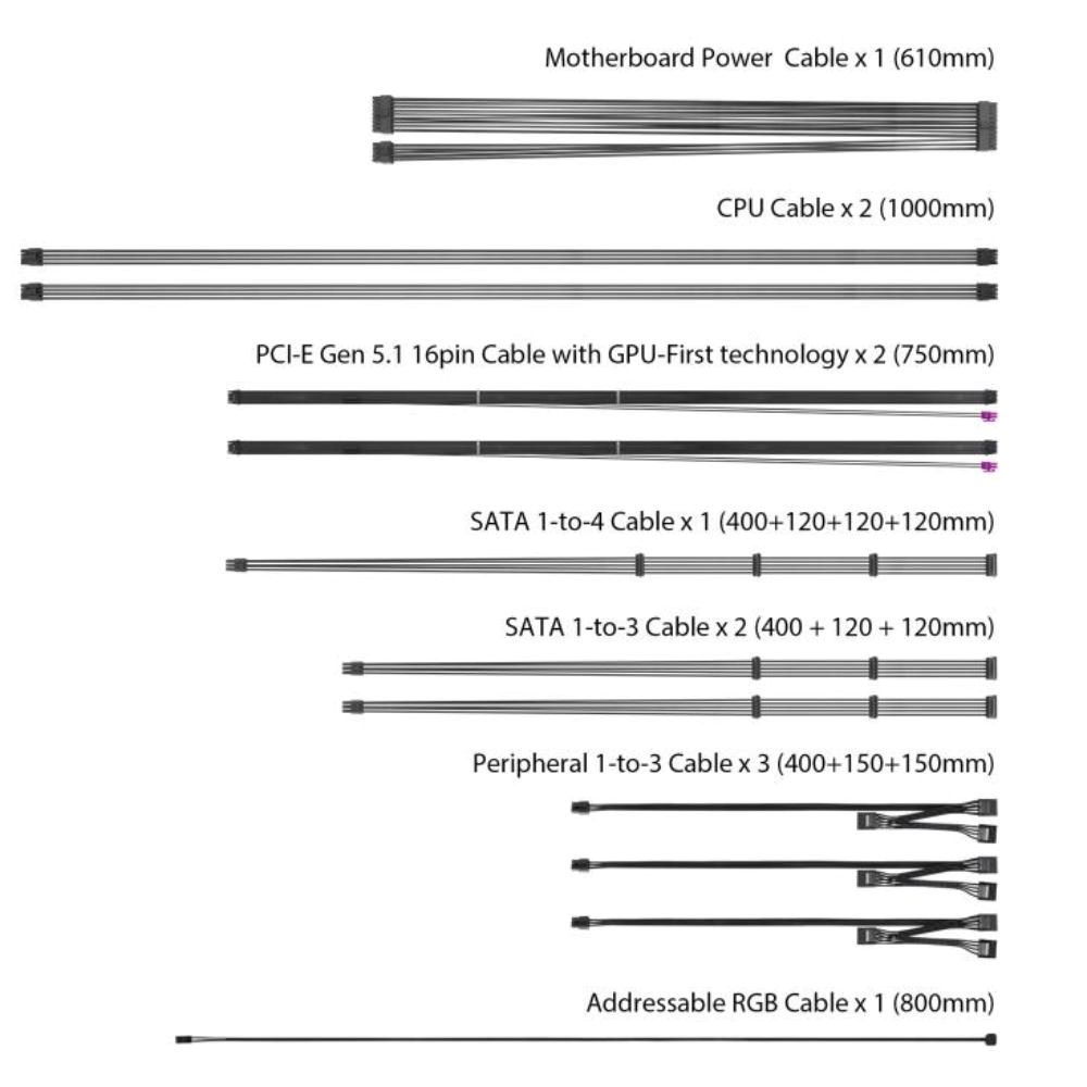 | PCIe 12+4pin Konektor | 2x / 2x (750mm) |