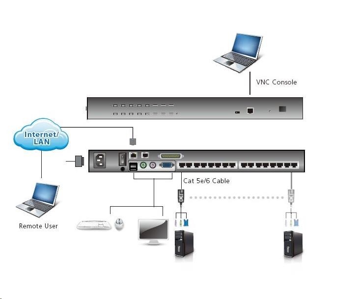 možno kontrolovat až 16 PC z jedné konzole přes síť LAN/WAN nebo Internet