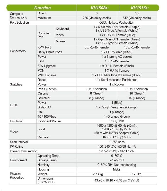 ATEN přepínač KH-1516AI 16-port OverNet Cat5 KVM PS/2+USB, OSD, rack, SUN, PON, VNC