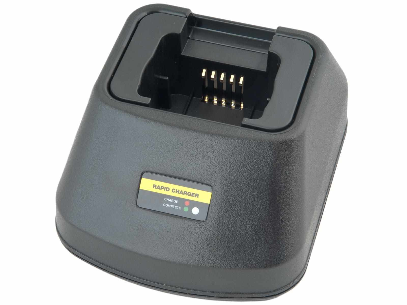 Kompletní nabíječ s redukcí pro nabíjení baterií PMNN4434, PMNN4434AR, PNN4434A, PNN4453, PNN4453A pro radiostanice Motorola RMM2050, RMU2040, RMU2080, RMU2080D, RMU Series, RMV2080, RMV Series, XT420, XT460. Nabíječ obsahuje vyjímatelnou patici, kterou lze za vyměnit za patice určené pro jiné typy baterií. Nabíjecí proud 700mA.
