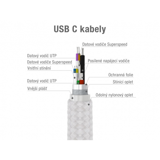 Samostatně odstíněné datové vodiče pro bezproblémový a rychlý přenos dat.