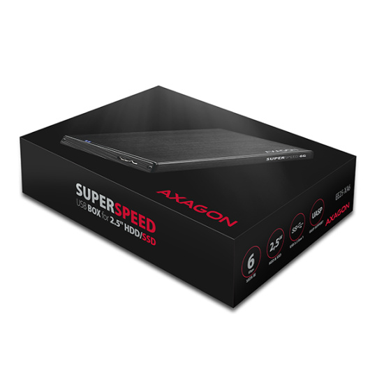 Kompaktní hliníkový externí box AXAGON EE25-XA6 ALINEbox s USB 3.2 Gen 1 (USB 3.0) rozhraním určený pro 2.5" SATA pevné disky nebo SSD.