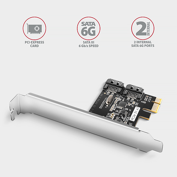 PCI-Express řadič AXAGON PCES-SJ2 rozšíří stolní PC o dva SATA porty s přenosovou rychlostí až 6Gb/s.