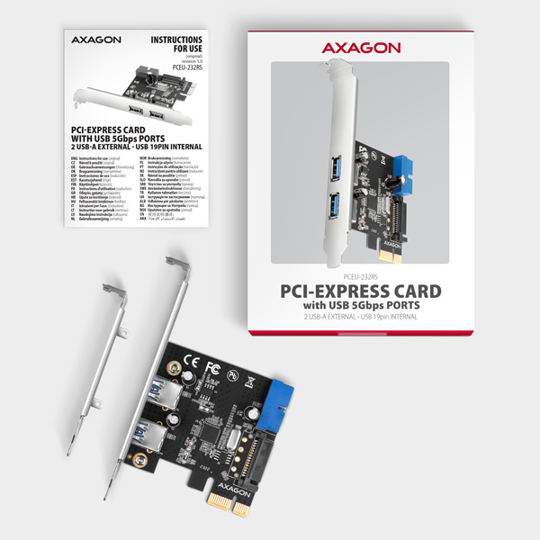 PCI-Express karta AXAGON PCEU-232RS rozšíří stolní počítač o čtyři USB 5Gbps porty. Karta je navržena pro rychlé datové přenosy rychlostí až 5 Gb/s.