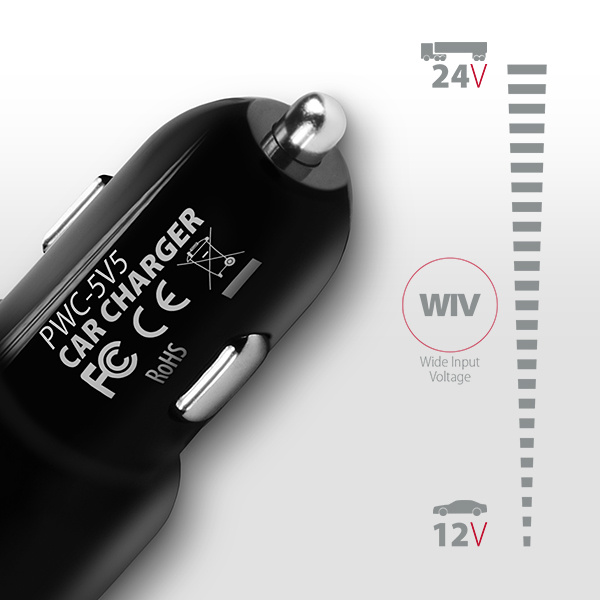 • Wide Input Voltage - funkce širokého rozsahu vstupního napětí, chrání adaptér proti podpětí a přepětí na vstupu a umožní automatické rozpoznání 12V nebo 24V palubního rozvodu.