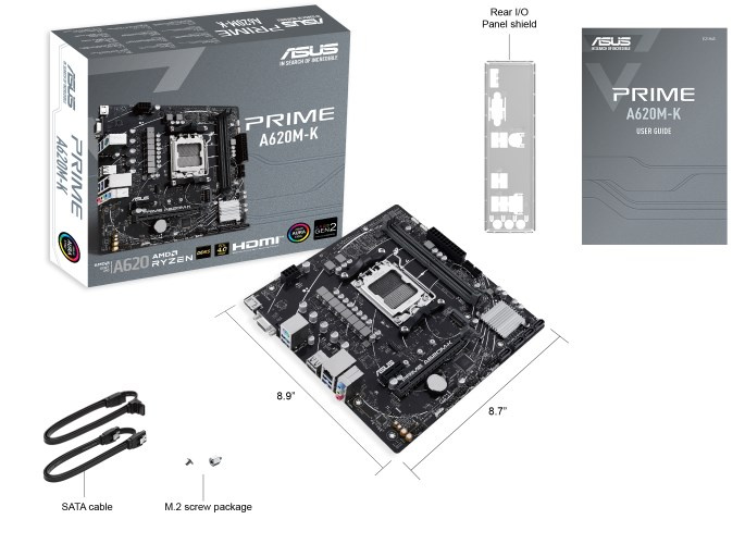 BAZAR - ASUS MB Sc AM5 PRIME A620M-K, AMD A620, 2xDDR5, 1xHDMI, 1xVGA, mATX - Po opravě (Bez příslušenství)