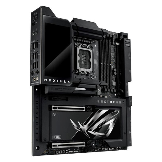 The ROG Maximus Z890 Extreme is the ultimate expression of cutting-edge motherboard technology and performance. Discover the upper limits of Intel® Core™ Ultra Series 2 processors, DDR5 modules, PCIe® 5.0 graphics cards, NVMe storage, USB connectivity, Thunderbolt™ functionality and more – all wrapped up in a sleek package featuring a full-color 5-inch long LCD screen that can deliver vibrant imagery or live system stats to suit your personal tastes.