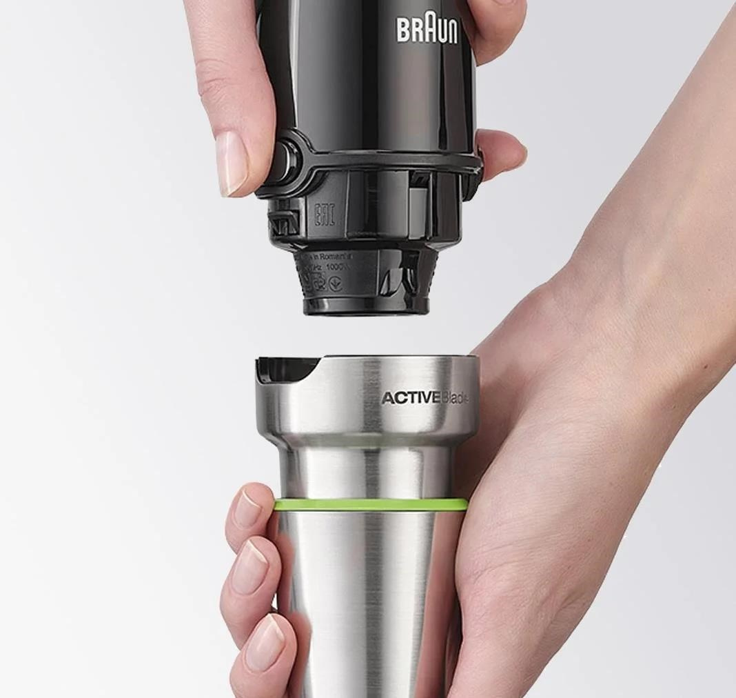 Výrazně lepších výsledků dosáhnete s tyčovým mixérem Braun MultiQuick 9 také díky průlomové technologii ActiveBlade, jenž se vyznačuje specifickým pohybem mixovací nohy i čepelí nahoru a dolu. Aktivní plocha na sekání potravin je tak až 2,5× větší, což ještě zvyšuje účinnost zpracování i velice tvrdých potravin a snižuje námahu až o 40 %, opět v porovnání s předchozím modelem. Vy se tak nemusíte bát pracovat ani se surovinami jako je např. kokos a další ořechy, nebo mražené potraviny.